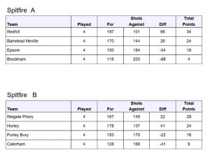 RBC scored another 10 points yesterday in the Spitfire League at Donyngs Ibc to guarantee advancing to the finals on 11th March. Who they play is wide open as Horley take on Reigate Priory in Round 6 in 2 weeks time. Purley Bury are in the frame too.