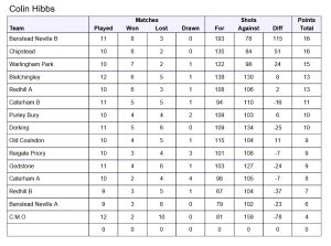 In the Colin Hibbs League Redhill A are in a respectable 5th place with 4 matches to play. Redhill B have matches in hand and could climb to mid table with a win tomorrow morning when both Redhill teams play. Come and support.