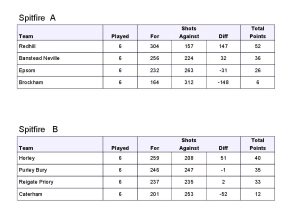 RBC scored another 10 points yesterday in the Spitfire League at Donyngs Ibc to guarantee advancing to the finals on 11th March. Who they play is wide open as Horley take on Reigate Priory in Round 6 in 2 weeks time. Purley Bury are in the frame too.