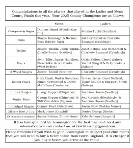 REDHILL BOWLING CLUB – DRAWN TRIPLES COMPETITION – SATURDAY 19th JULY
